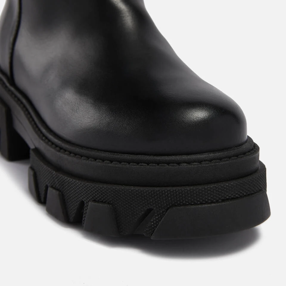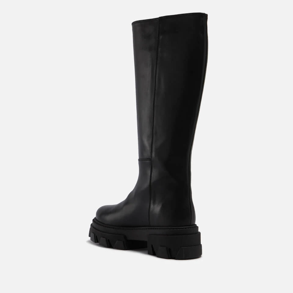 ALOHAS’ Katiuska knee-high boots have chunky rubber soles, making them practical as well as chic. They’re made from leather and hit just below the knee. They’ll work with skinny jeans as well as mini hemlines.