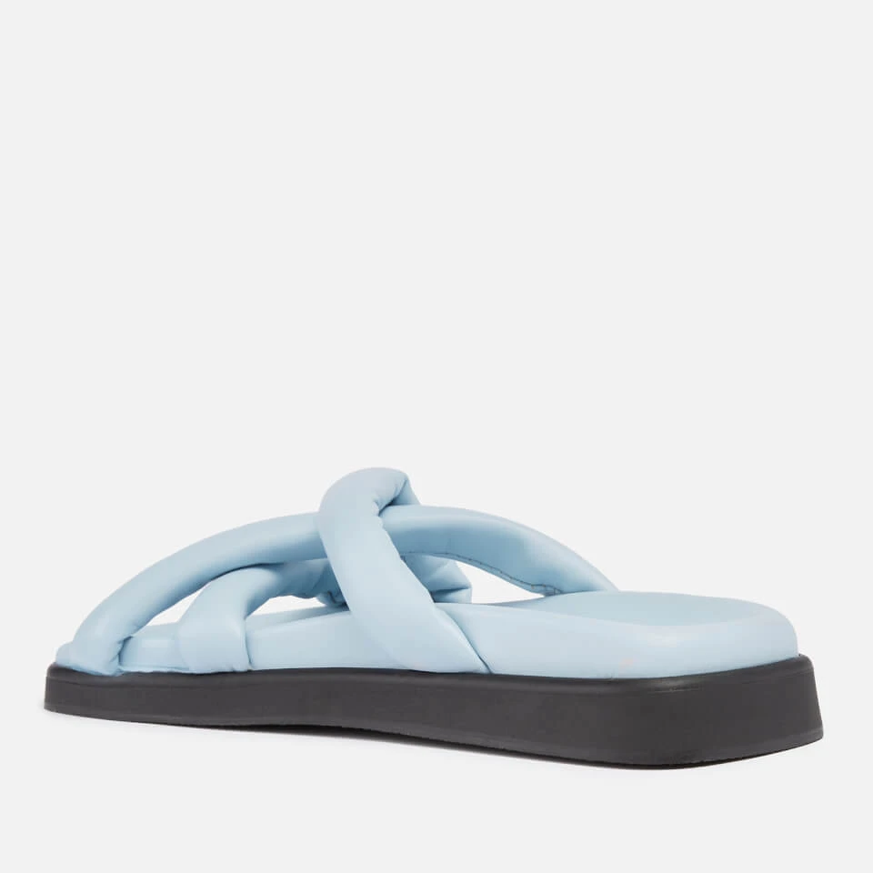 - Crossover straps, anatomic footbed, square toe, rubber soles