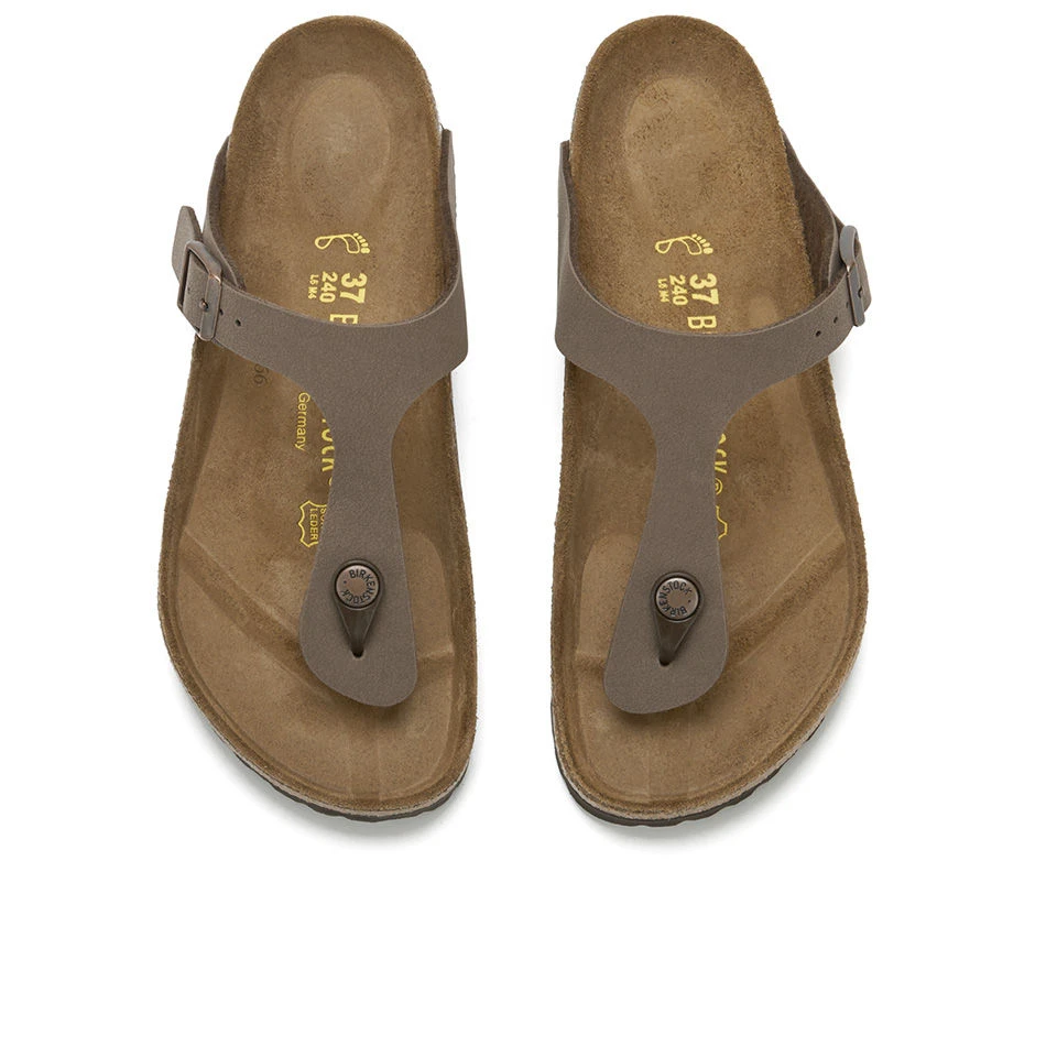 Purveyors of comfort, Birkenstock®’s Gizeh sandals are presented in the classic toe-post silhouette with an adjustable strap for added comfort. The design is finished in soft Birko-Flor® with shock-absorbing soles for all-day support.