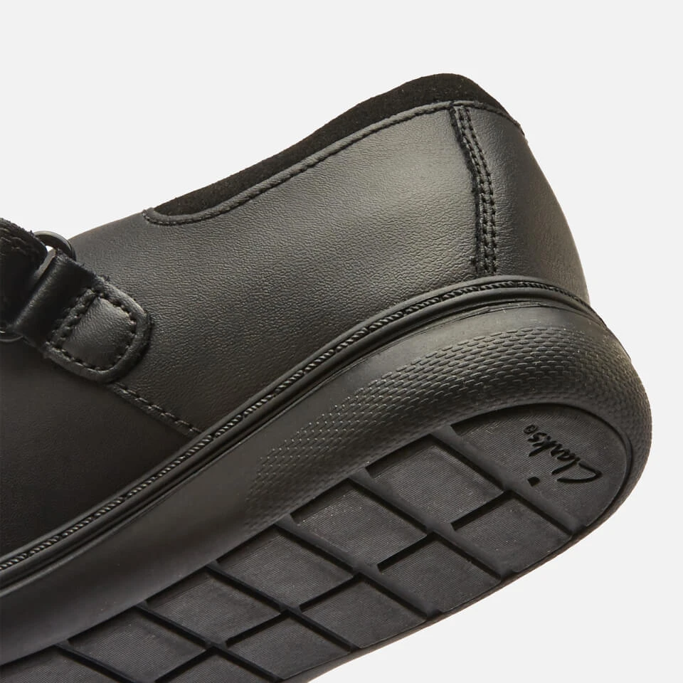 Designed with durability and smart appeal in mind, the Scooter Jump school shoes offset playground practicality with playful charm. Crafted from robust black leather, the pair have a Mary Jane-inspired silhouette decorated with pretty floral trims. Toe bumpers protect against abrasions, while a thick rubber outsole provides enhanced grip.