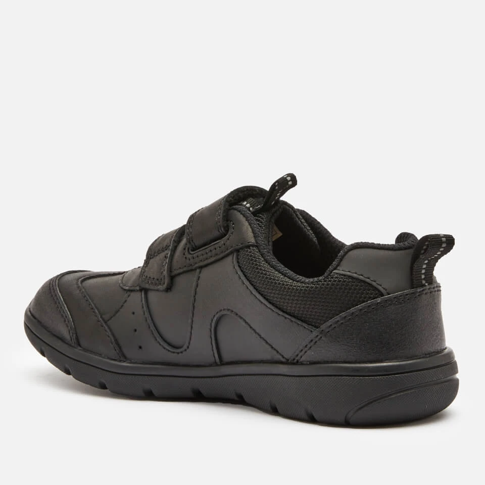 Both practical and durable without compromising on cool, Clarks’ Scooter Run school shoes are playground approved. Crafted from robust black leather, the hook-and-loop fastening pair feature a chunky bumper toe and sporty panelling. The trainer-inspired silhouette is complete with an antibacterial footbed for long-lasting freshness.