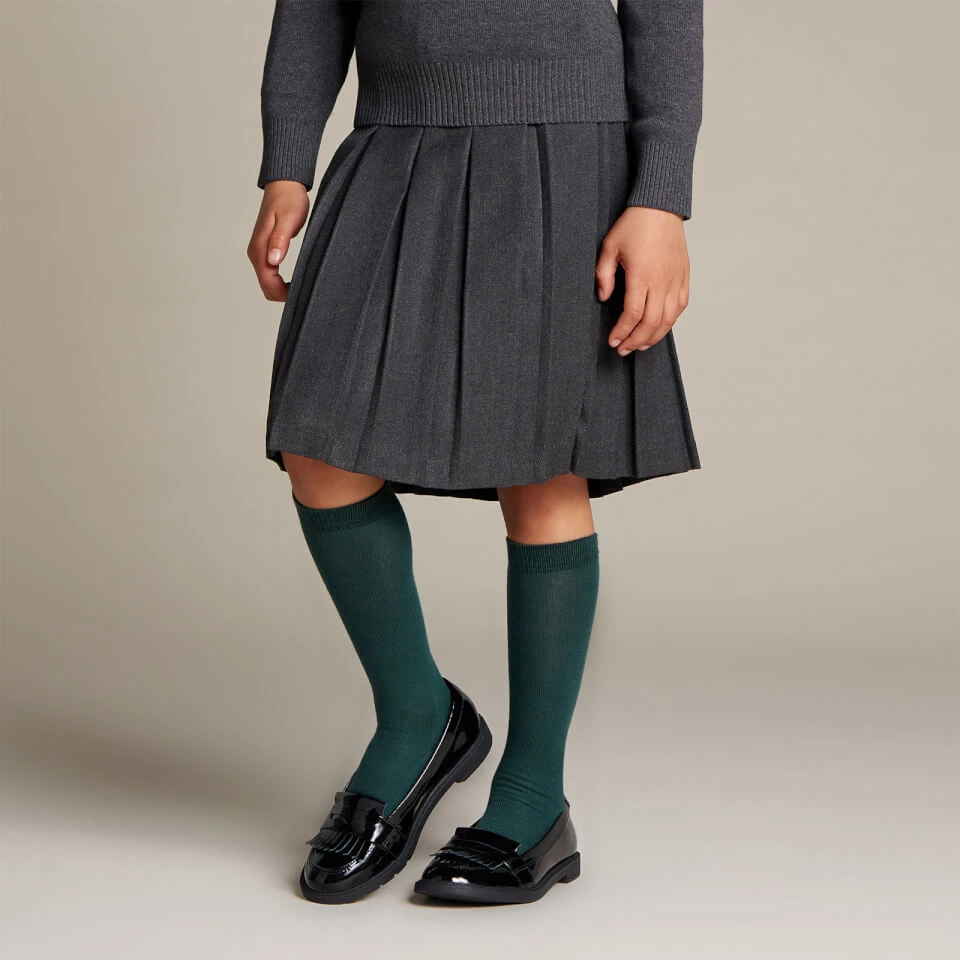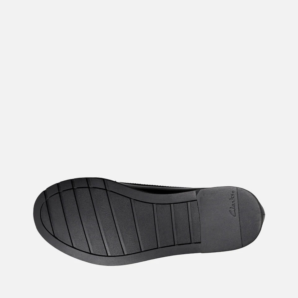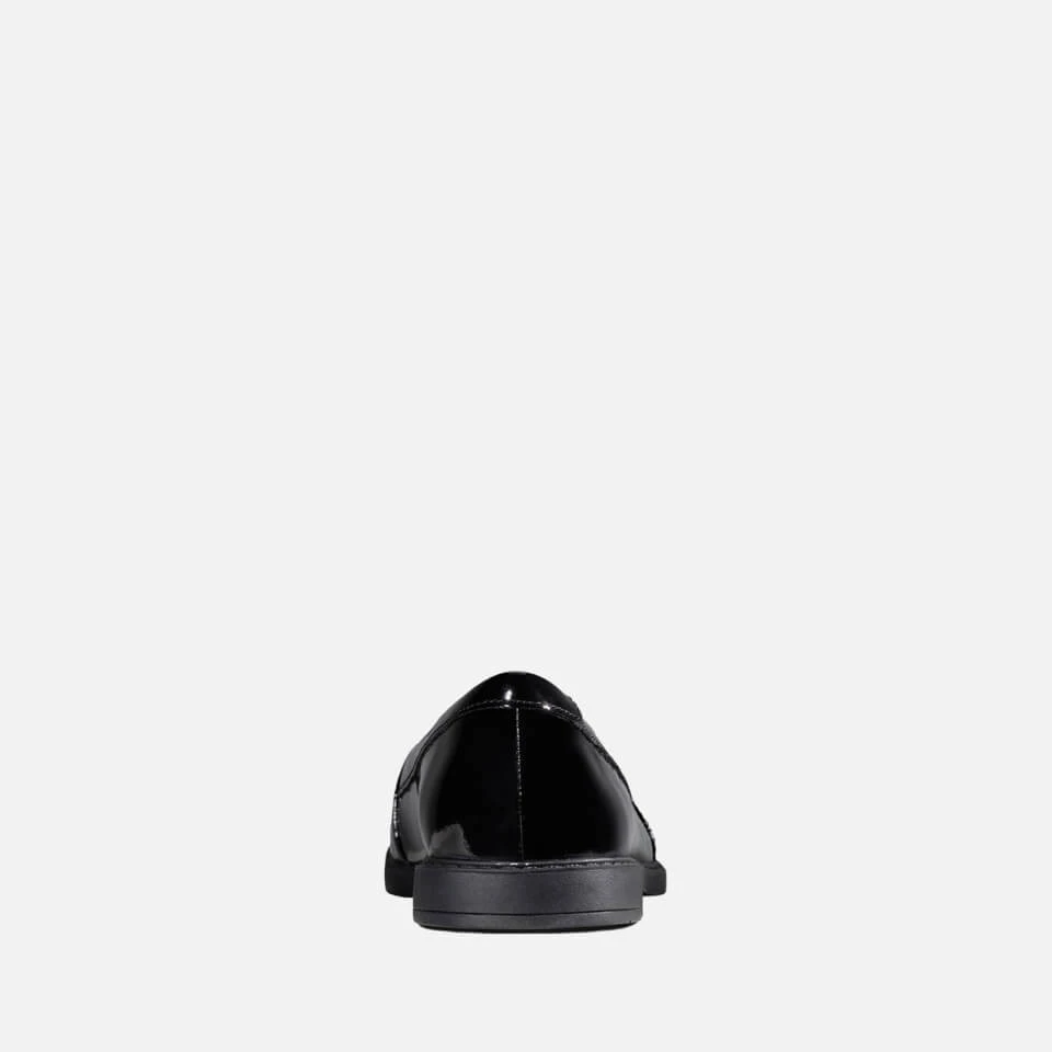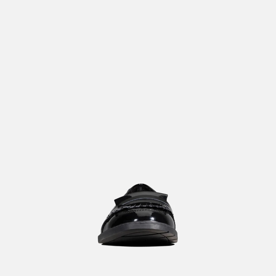 Clarks’ Scala Bright school shoes are a classic slip-on loafer with fringing on the front. They’re made from premium black patent leather and have padded collars for support. Partially lined from recycled materials, they have Agion® technology to keep feet feeling fresh and a lightweight, flexible rubber sole.