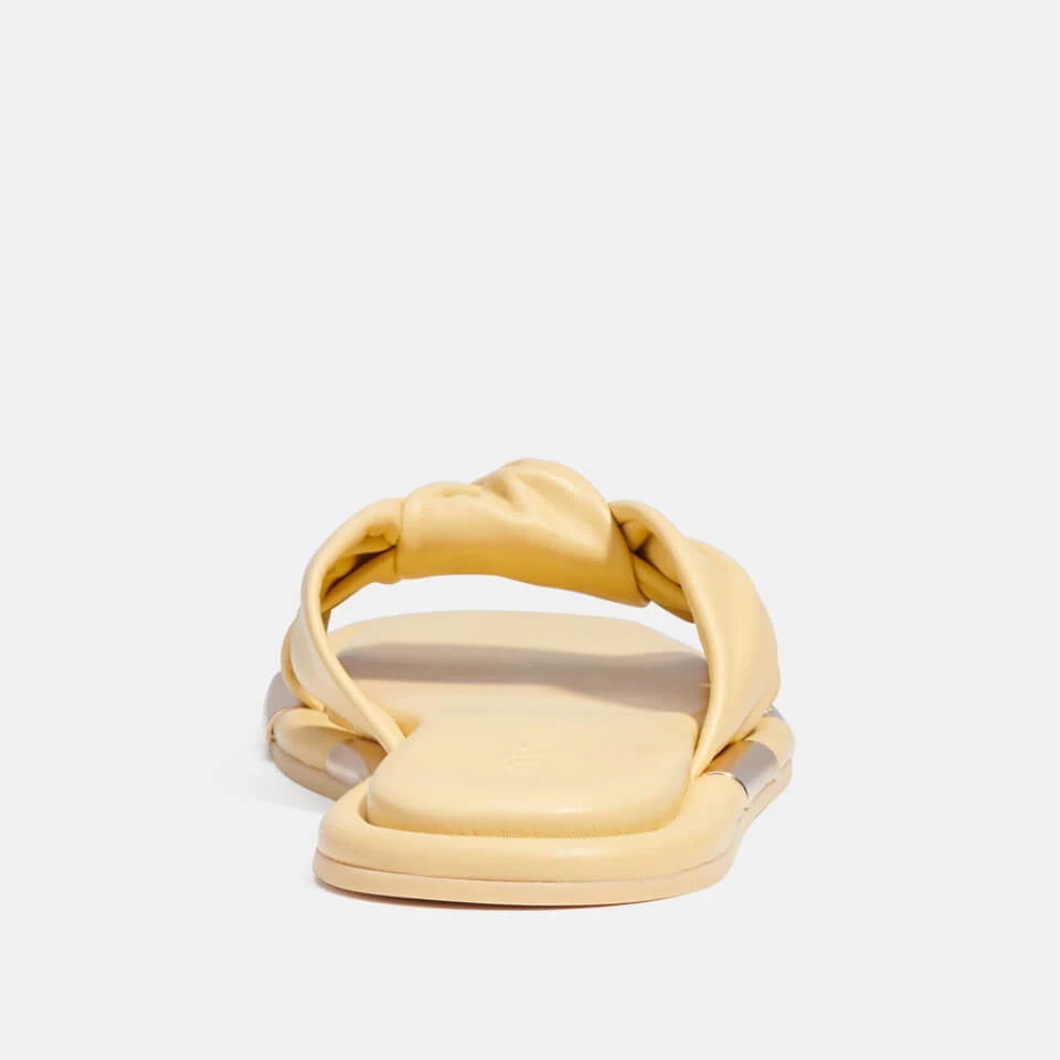 - Knotted vamp, gold-tone logo plaques, cushioned footbed, rubber soles