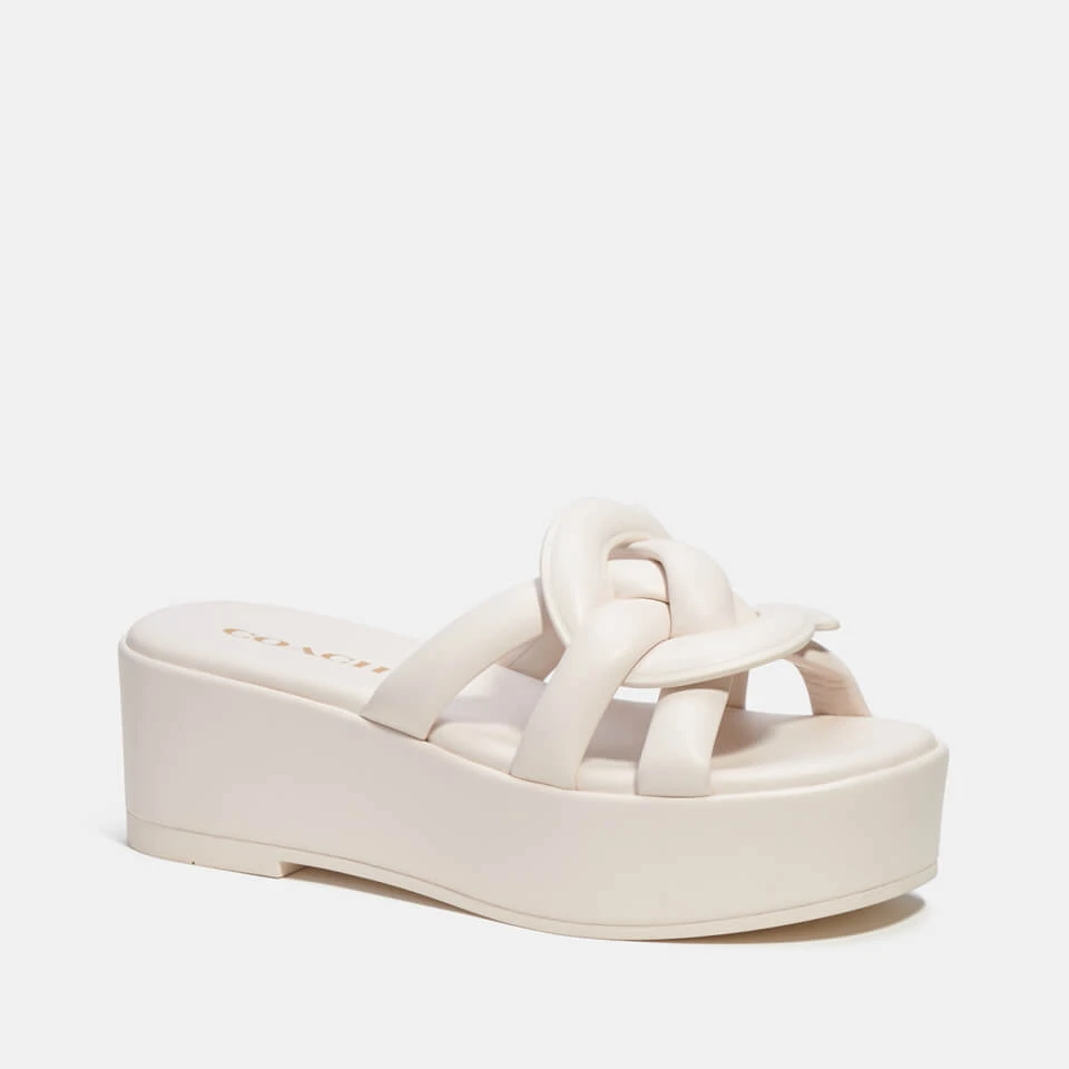 Coach enters this Summer’s retro-style stakes with Everette sandals. Set on flatform soles, they are made from pale cream leather with ornate woven detail at the vamps. Slip these on with a rotation of dresses and cropped trousers.