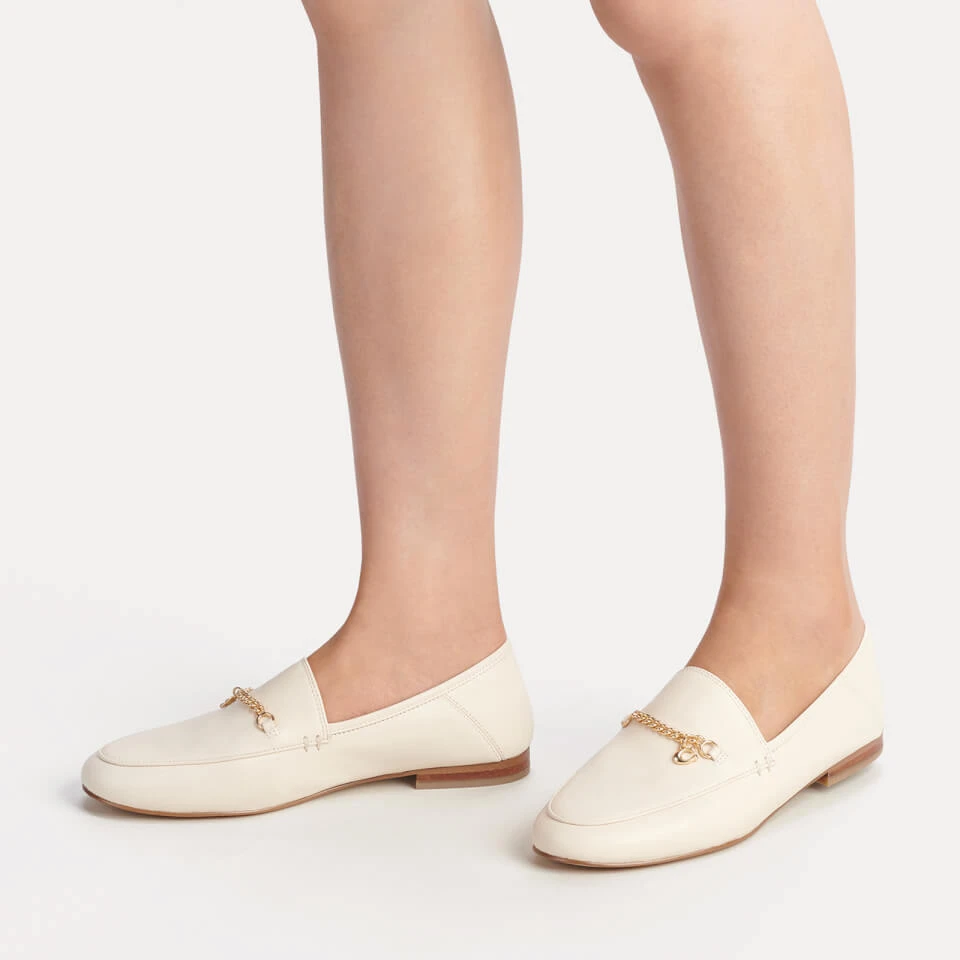 Transcending seasons and trends, Coach’s Hanna loafers are purpose-made for smart casual wardrobes. They are cut to a slim profile and made from supple, polished leather. Rubber soles provide traction and comfort while signature gold-tone chains sit at the vamps with the signature ‘C’ monogram charm.