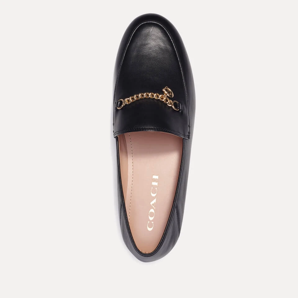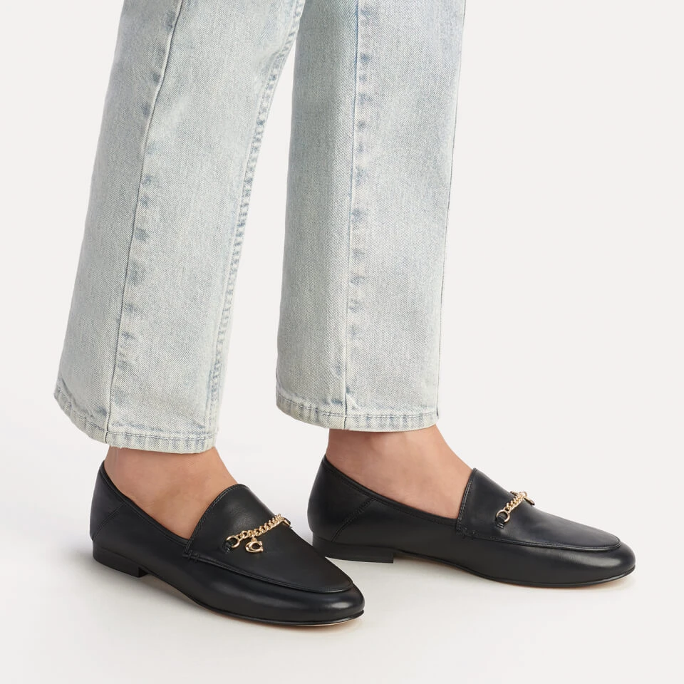 Transcending seasons and trends, Coach’s Hanna loafers are purpose-made for smart casual wardrobes. They are cut to a slim profile and made from supple, polished leather. Rubber soles provide traction and comfort while signature gold-tone chains sit at the vamps with the signature ‘C’ monogram charm.
