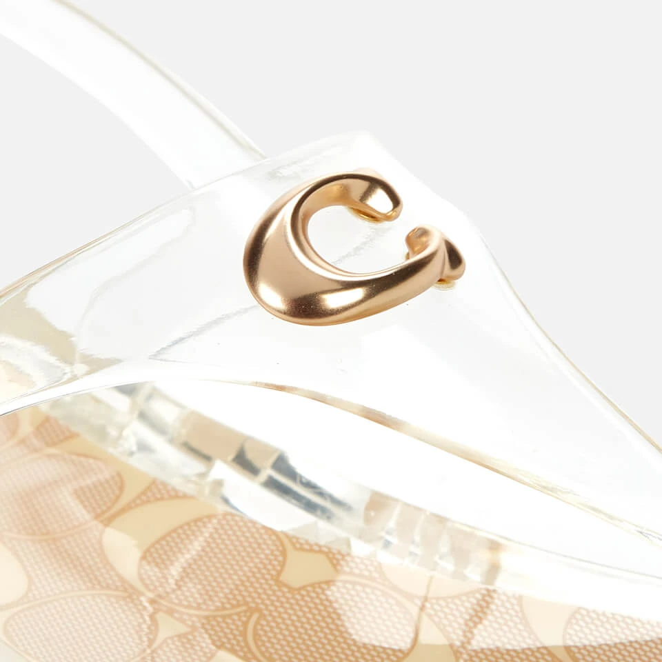 Paying homage to the vintage-inspired jelly design, Coach’s Natalee sandals are a re-imagined take on a classic. Adorned with tonal branding, the transparent upper features a toe-thong strap and secures with a buckled ankle strap. Versatile in nature, they’ll compliment any summer look.