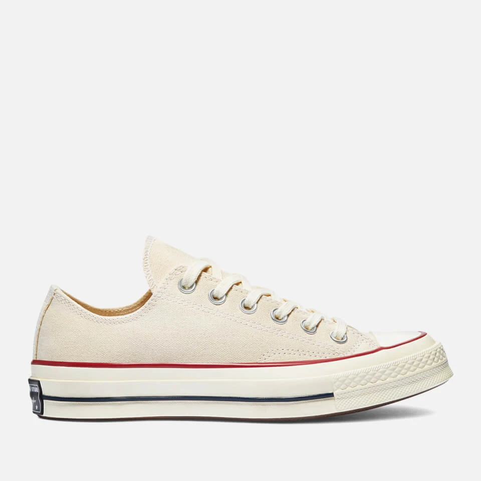 Converse Chuck Taylor All Star 70 Ox trainers in parchment. Classic Converse low-top shape in a cream coloured canvas. With a durable rubber sole and signature black and red stripes, this trainers are iconic.