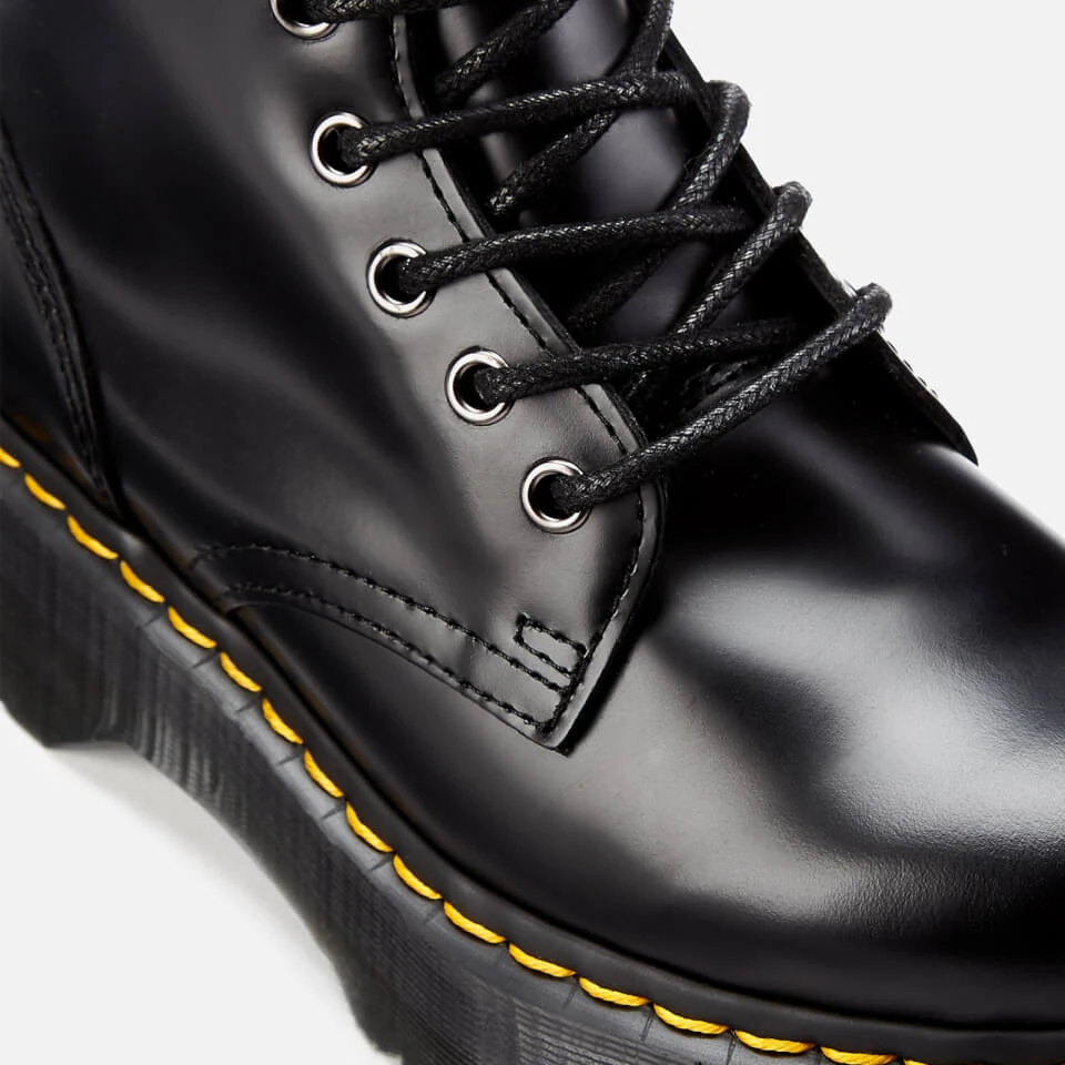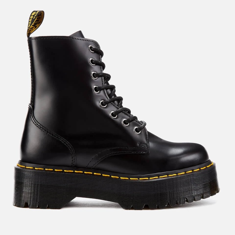 Based on the classic 1460 design, these sturdy Dr Martens boots grip the upper ankle, with the 8-eye fastening supporting the leg and foot. The strong, high-quality polished smooth leather is accentuated by the yellow stitching and heel loop. Dr Martens started life as humble work boots before becoming style icons. The products are both fashionable and practical, and they now cater to all: men, women and children, providing excellent foot care and a distinctive aesthetic to users.