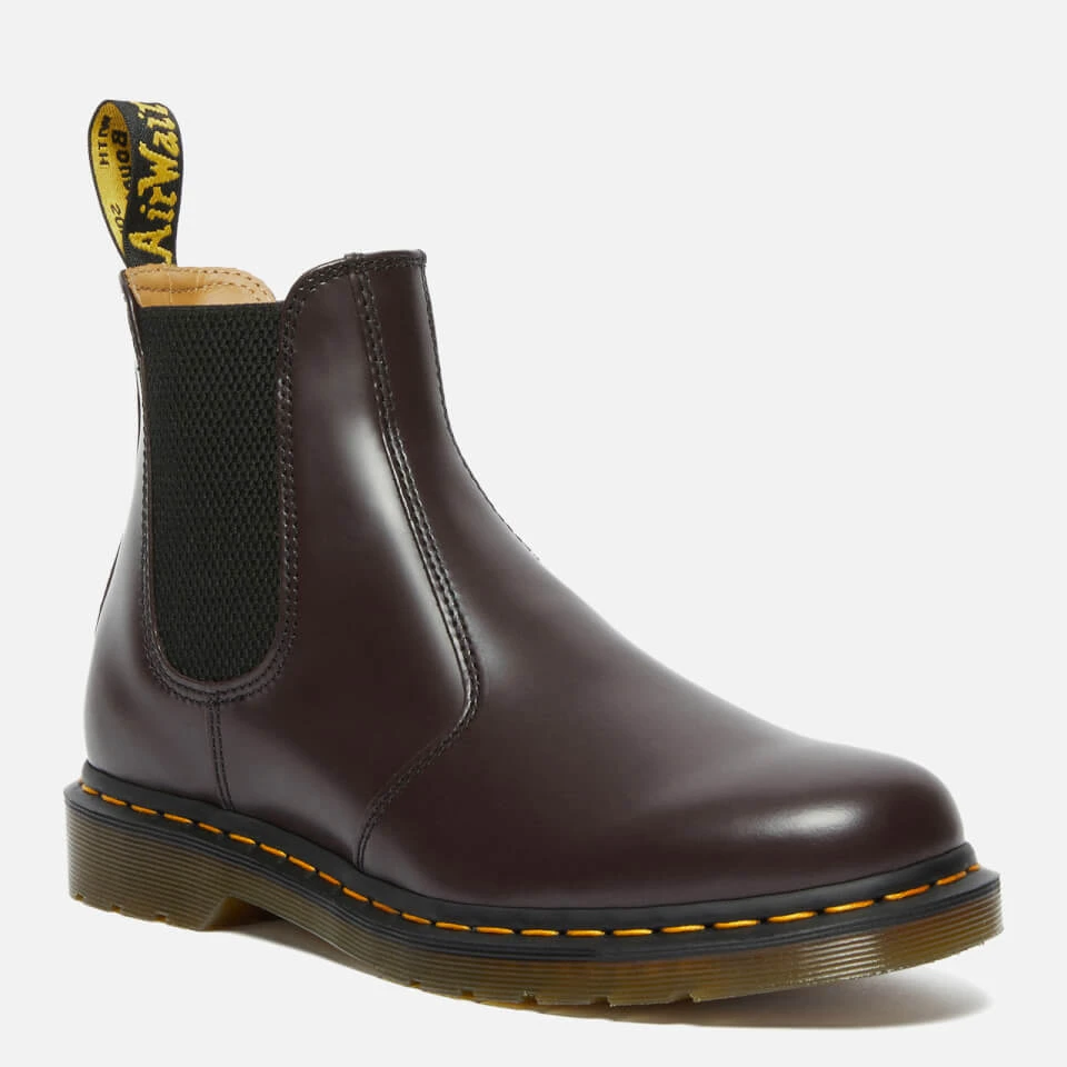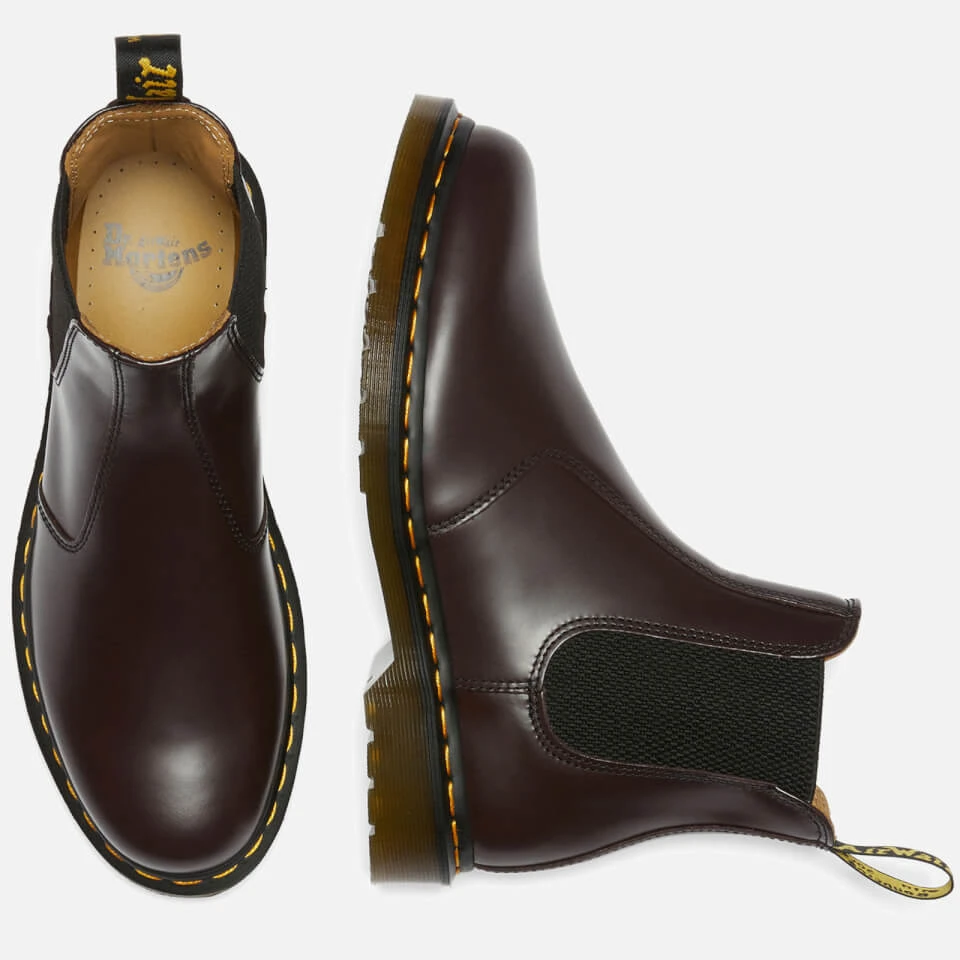 - Pull tabs, elastic gussets, round toe, Goodyear-welted, yellow stitching, PVC soles