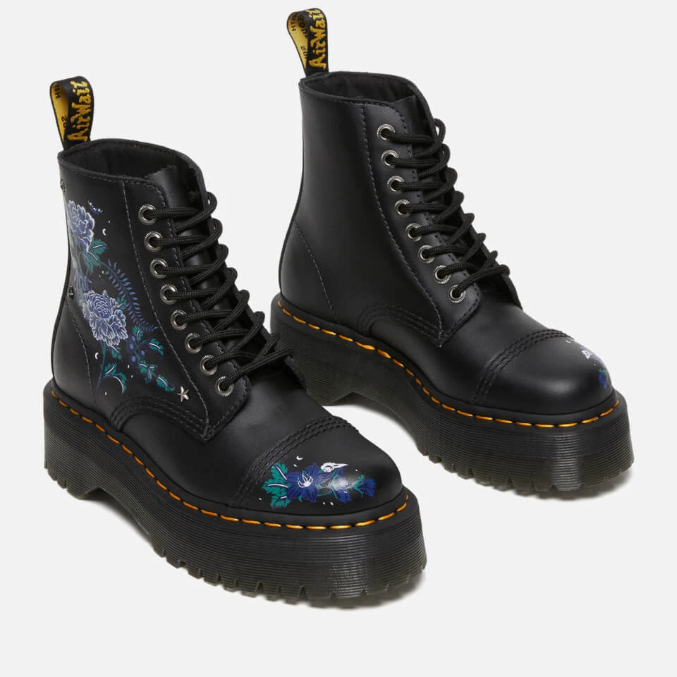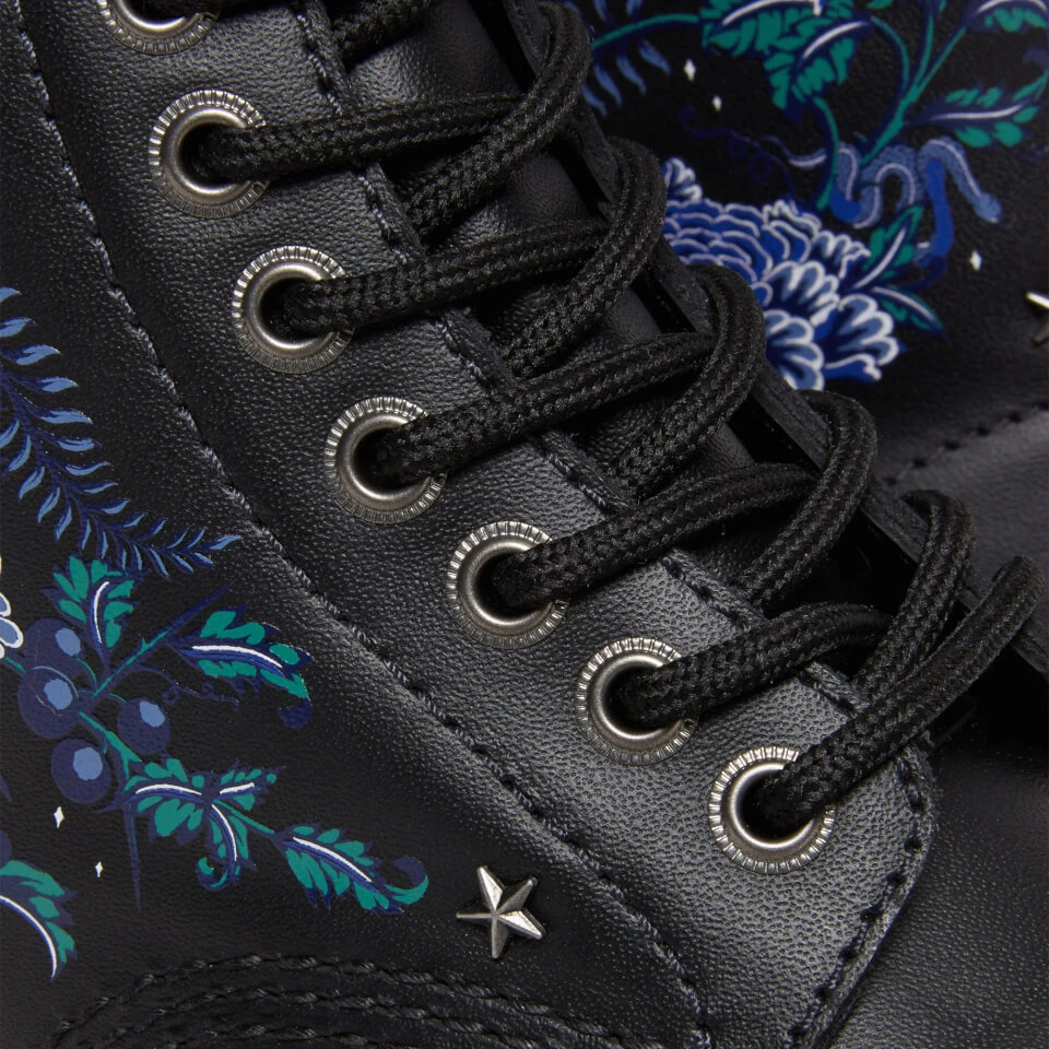 - Pull tabs, silver eyelets, floral embroidery, Goodyear-welted stitching, rubber soles
