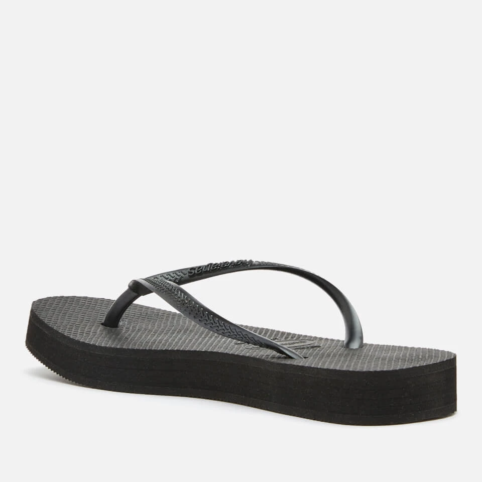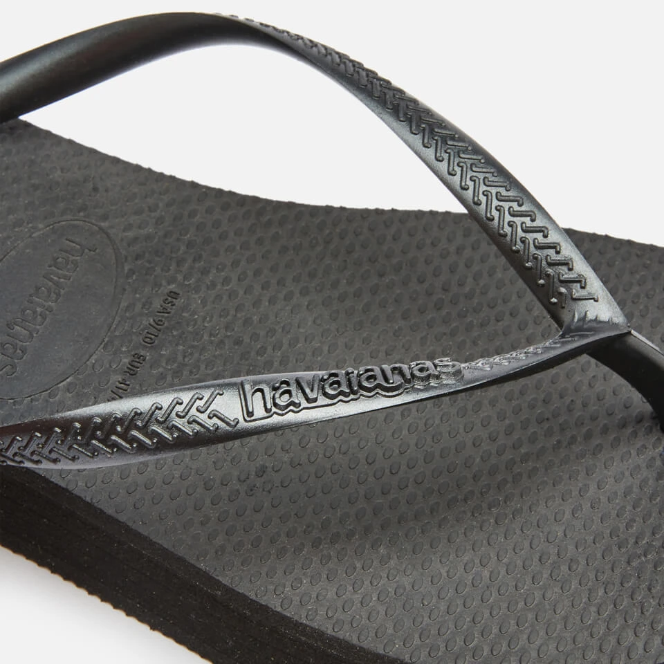 Havaianas’ cult flip flops have been elevated by a flatform sole. Crafted from durable, lightweight rubber, they feature a slim silhouette and silver uppers embossed with signature branding. Grip technology on the outsoles promote practical, everyday use.