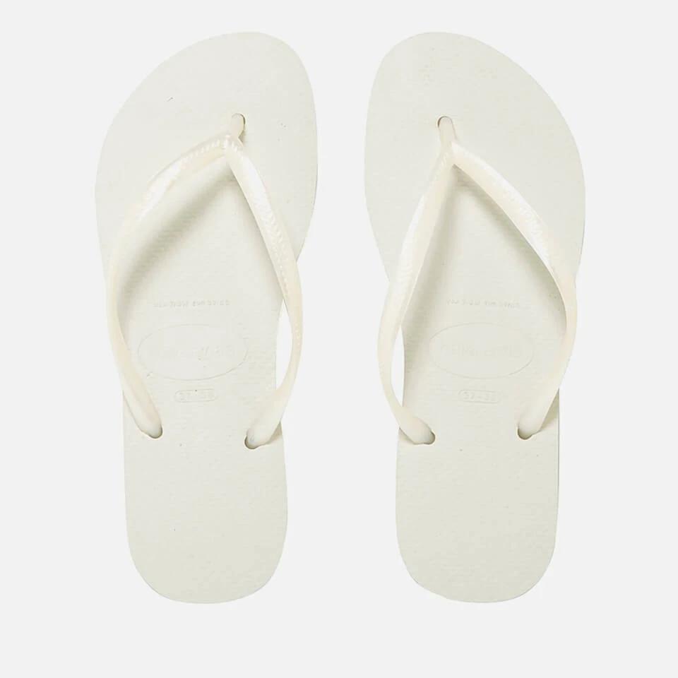 Women’s lightweight and authentic flip flops by Brazilian brand, Havaianas. Crafted from soft and durable rubber, the flip flops boast thinner, more delicate straps than the original design. The rice grain textured footbed provides optimum comfort and the non-slip rubber sole enhances the grip. Finished with tonal branding to the thong straps. E.N.