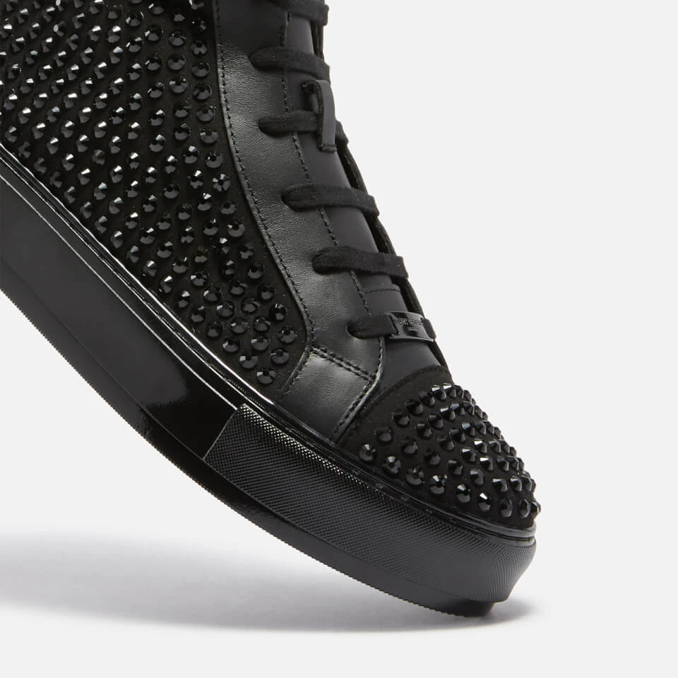 Exemplary of the label’s richly-embellished, decadent aesthetic, Kurt Geiger’s Laney hi-top trainers showcase the signature eagle emblem on the heel and are cocooned in glossy black studs that call for after-dark occasions. Pair your own with cropped trousers or jeans and a simple Tee.