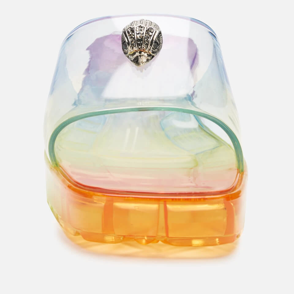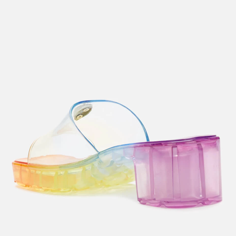 Kurt Geiger London’s vibrant Maddie mules are made from ‘90s-inspired jelly material. The slip-on style has a block heel for comfortable lift and signature eagle embellishment on the transparent strap.