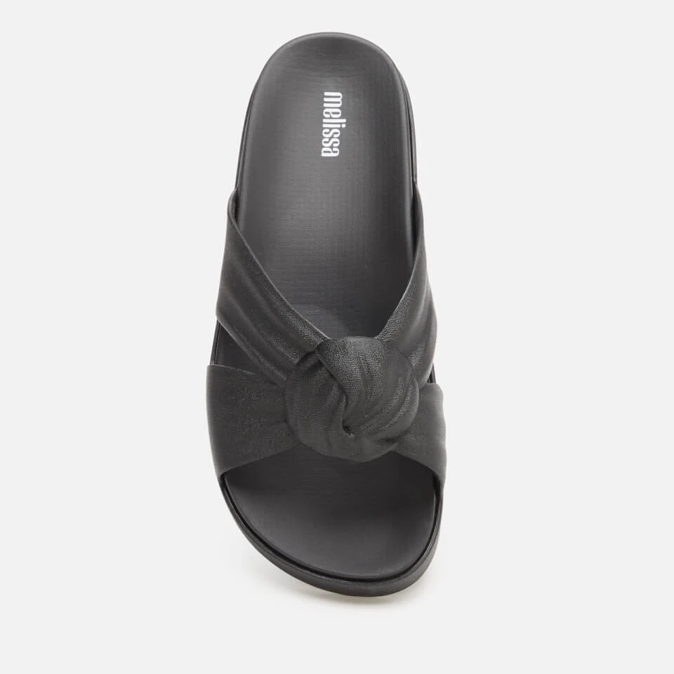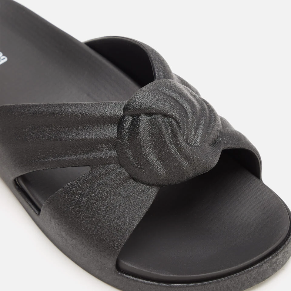 Melissa’s Plush slide sandals are made from the label’s Melflex rubber that’s both lightly scented and vegan. They have a padded footbed and a slip-on strap moulded with an illusory knot.