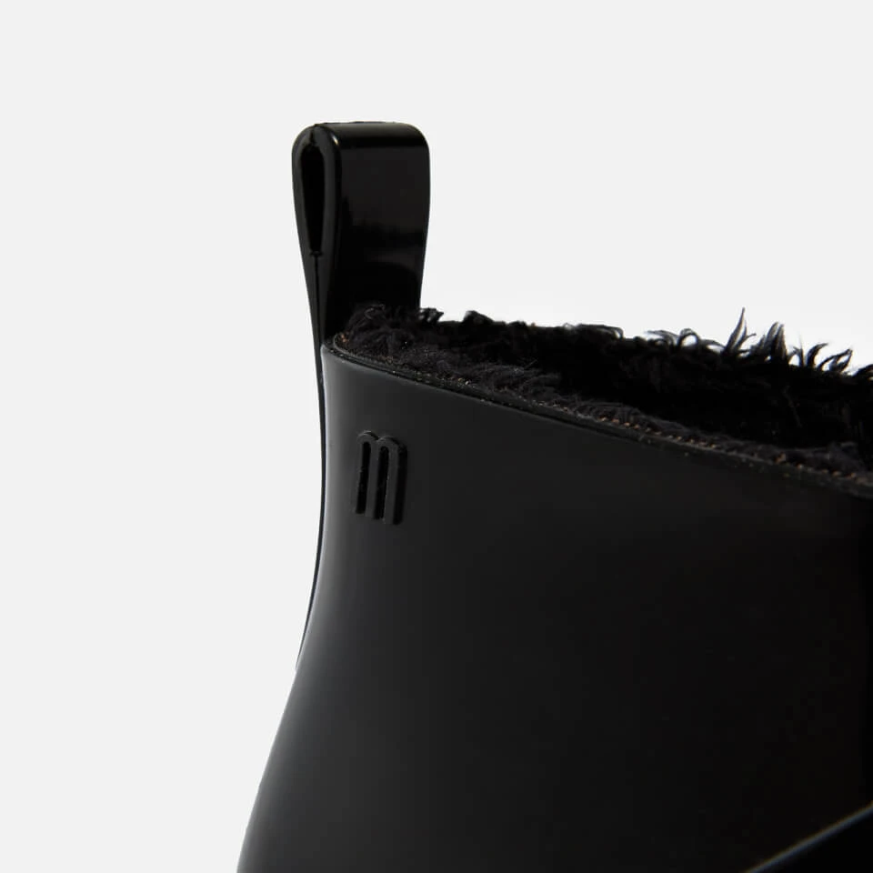 - Pull tab, embossed logo, black faux shearling lining, brown soles