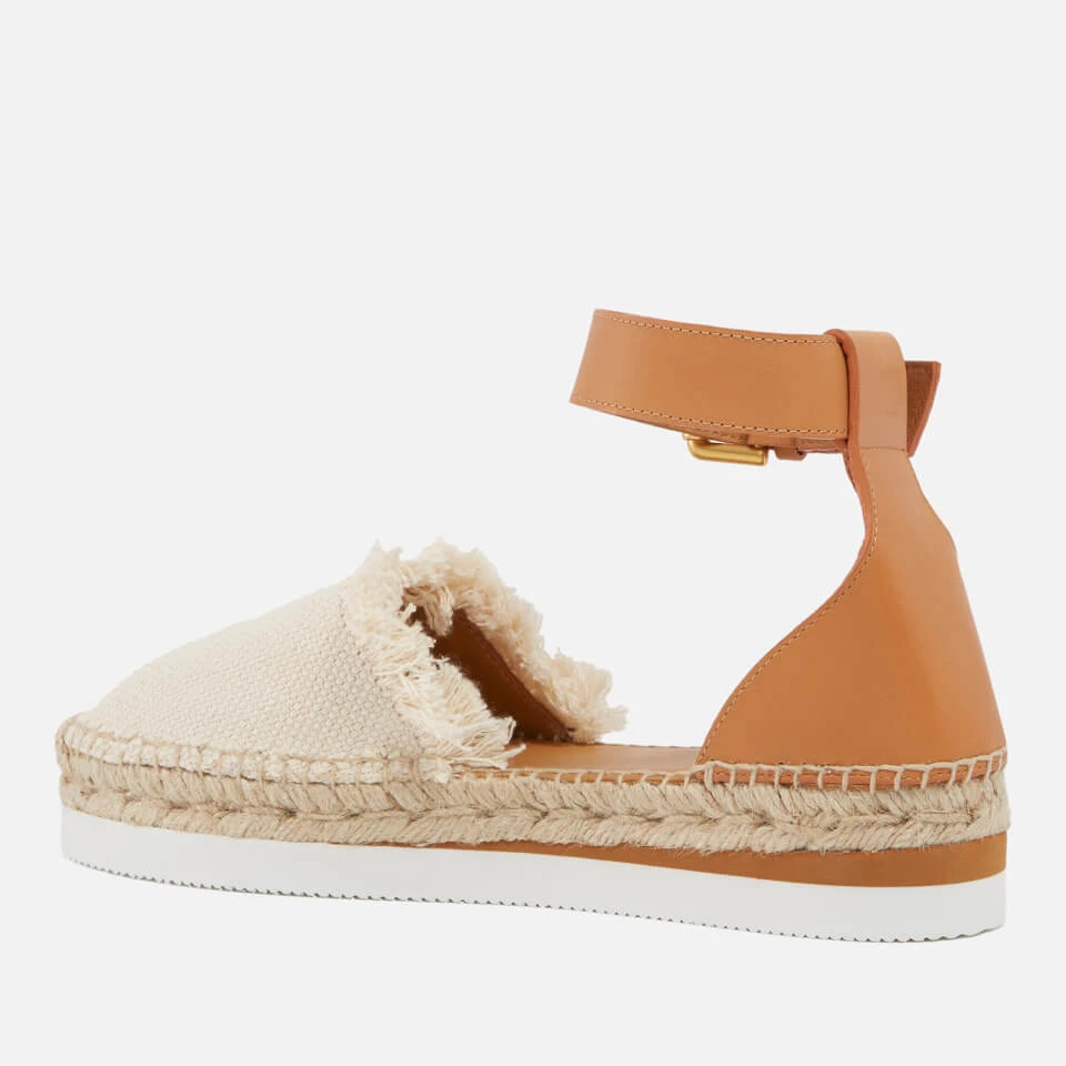 See by Chloé’s Glyn espadrille sandals are made from durable canvas with smooth tan leather trims. They are supported with jute midsoles and are finished with frayed trims for a bohemian sign-off.