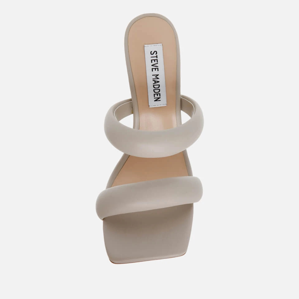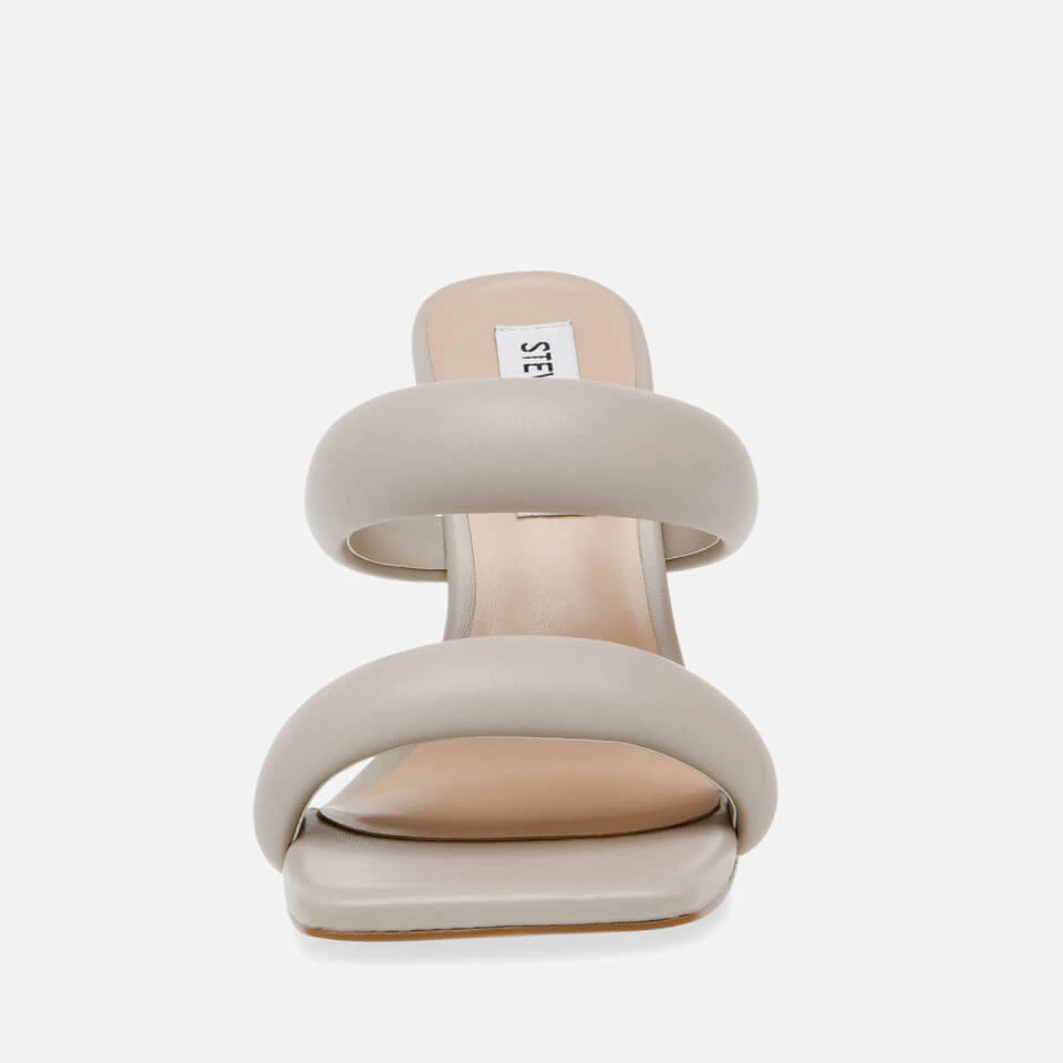 - Padded straps, square toes, logo patch, designer plaque on soles