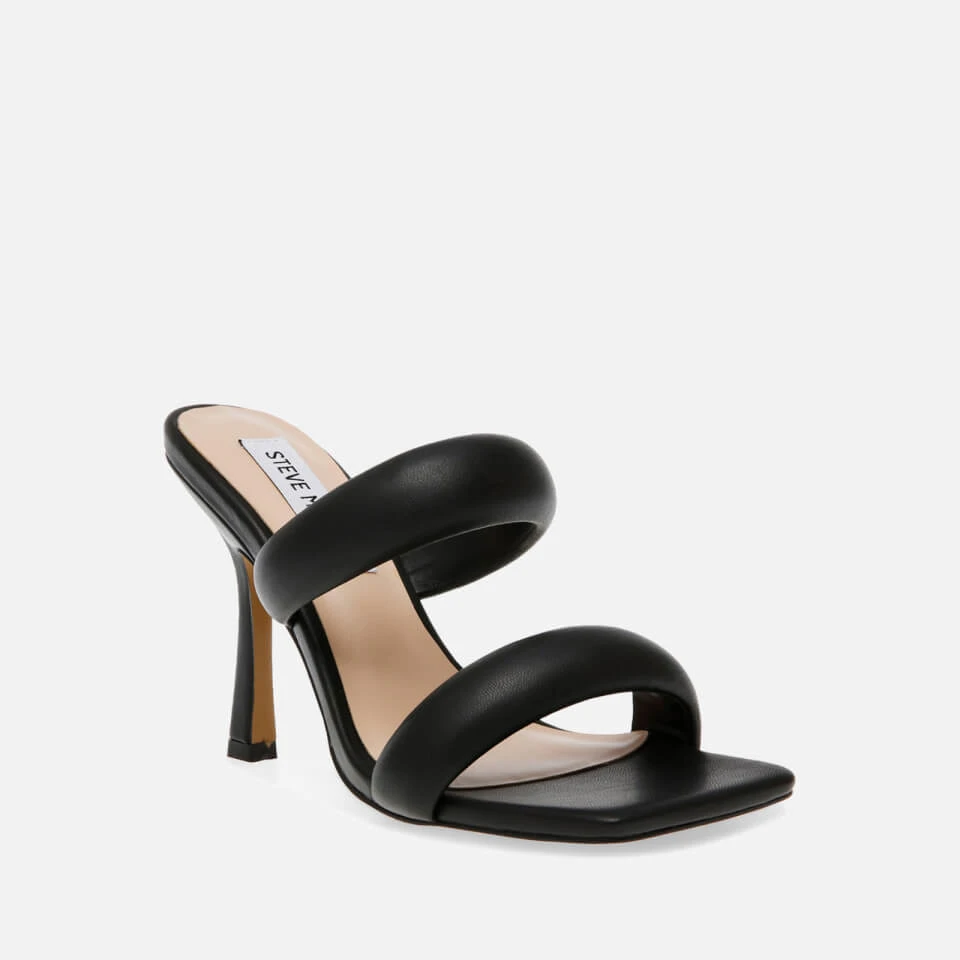 - Double straps, square toe, logo patch, signature plaque on the outsole