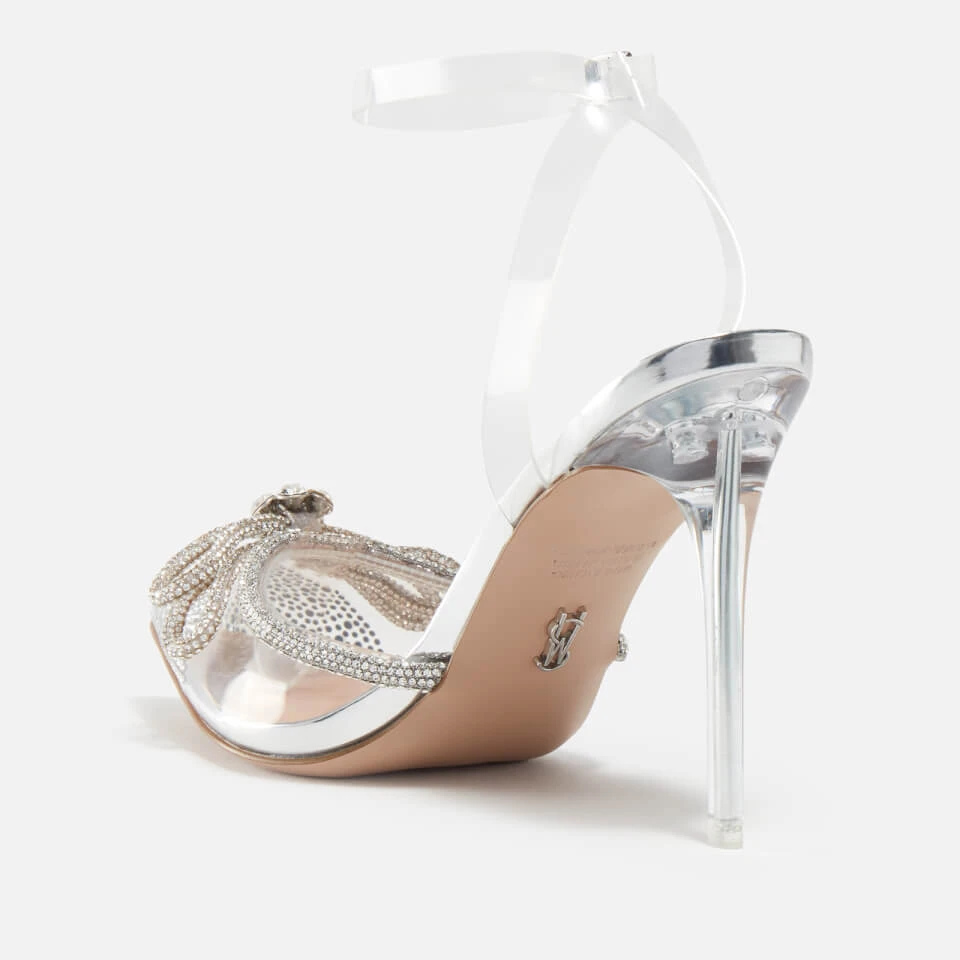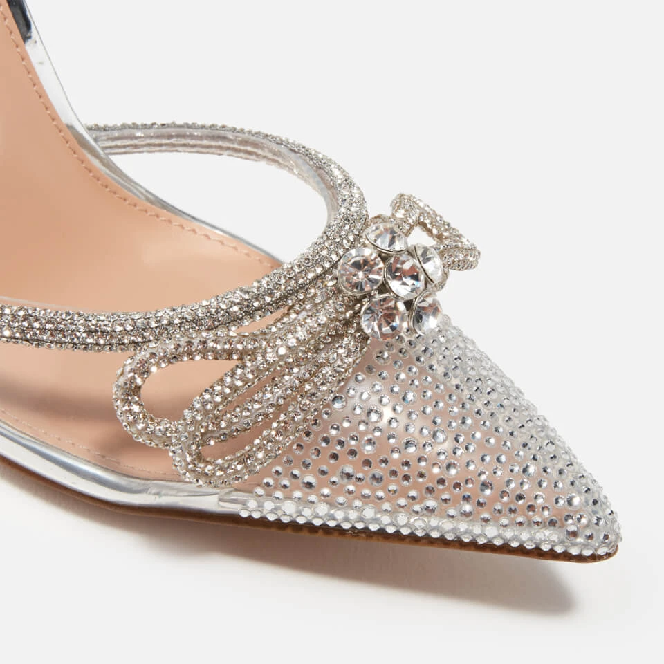 - Pointed toe, sparkly embellishments, bow detailing, logo patch