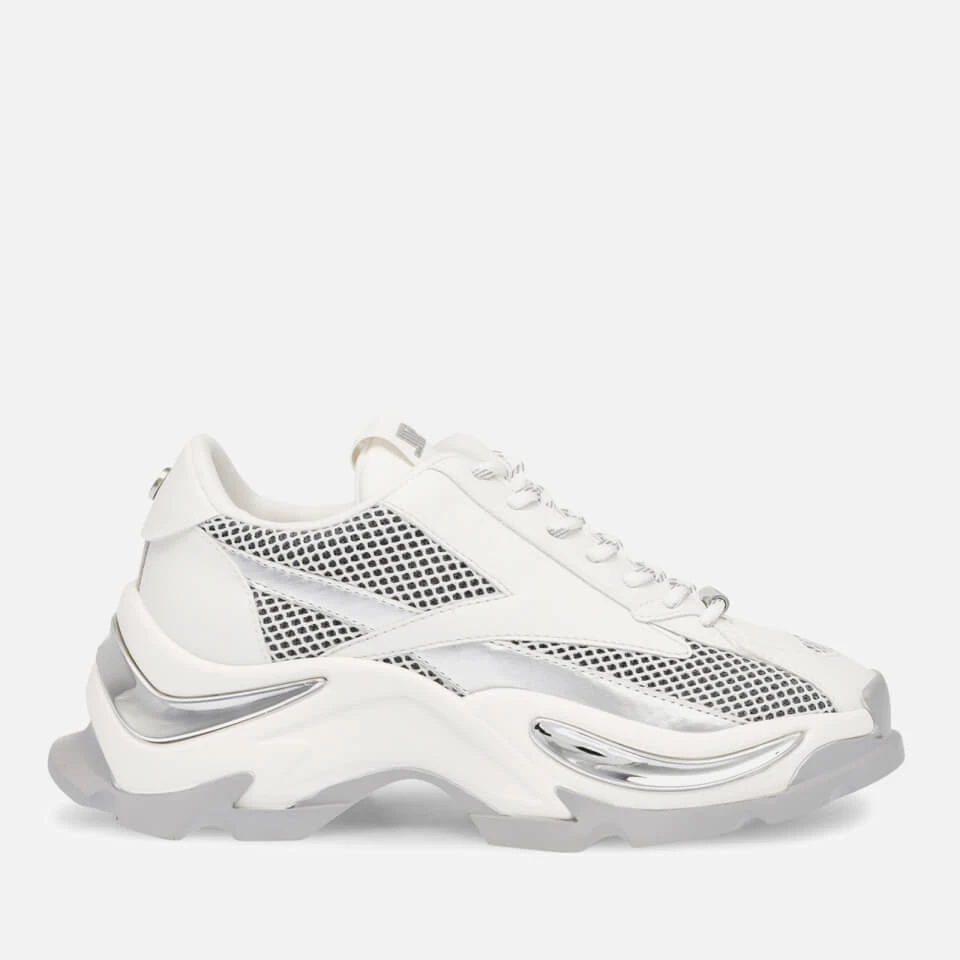 - White and silver mesh and faux leather-blend