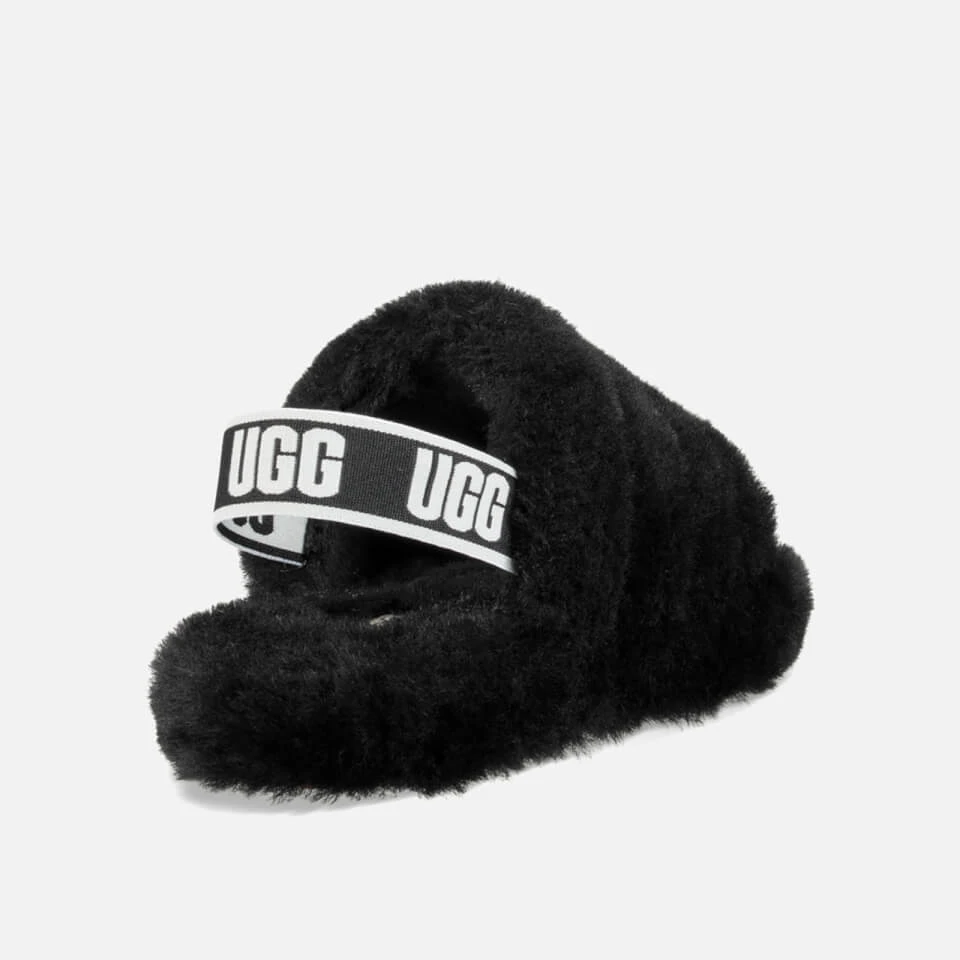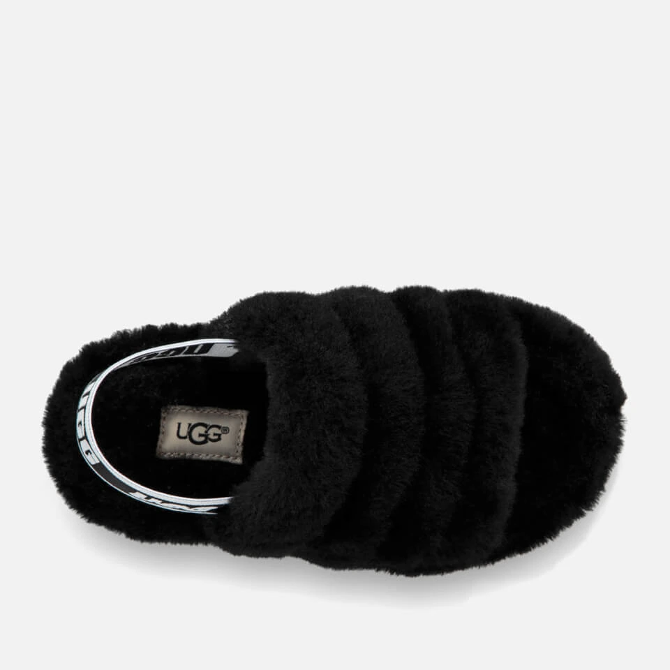 The UGG ‘Fluff Yeah’ for kids marries a sandal silhouette with the cosiness of a slipper for a fun, statement look. Fashioned from soft sheepskin, the shoe has an all-over fluffy texture that’s paired with a lightweight sole for extra mobility. The elasticated heel strap offers a secure fit and is detailed with branding.