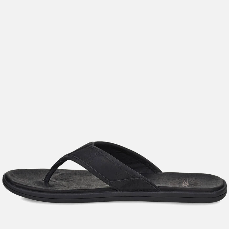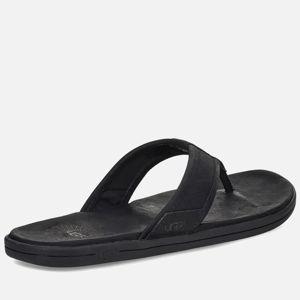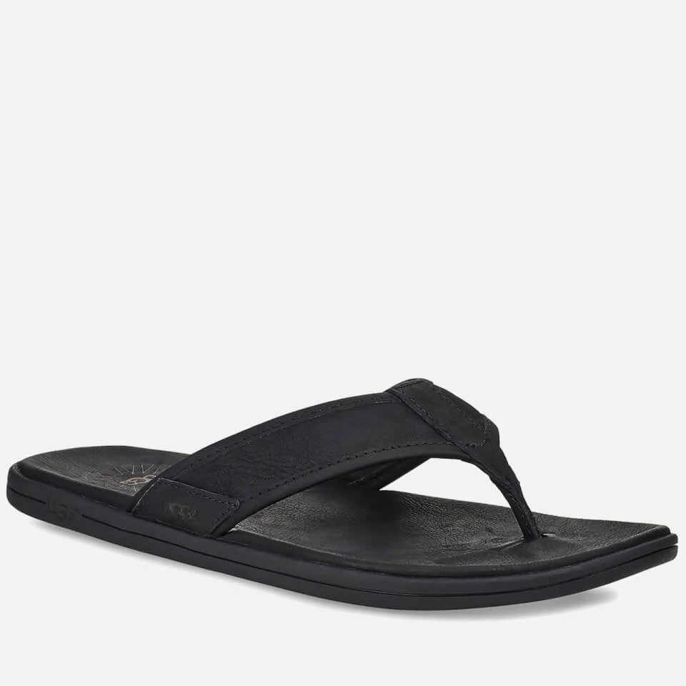 Crafted from grained black leather, UGG’s seaside flip flops have a soft, worn aesthetic. The slip-on design is cushioned with microfibre-lined EVA for comfort with every step.