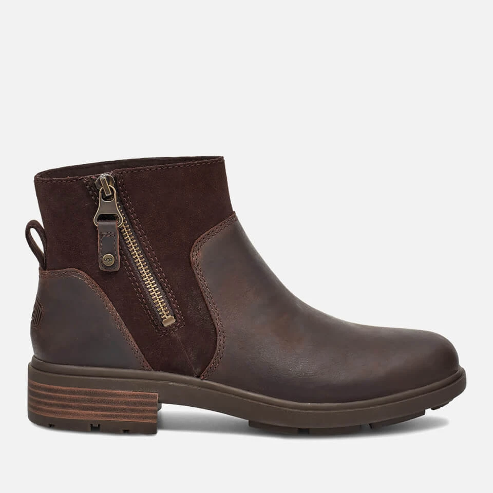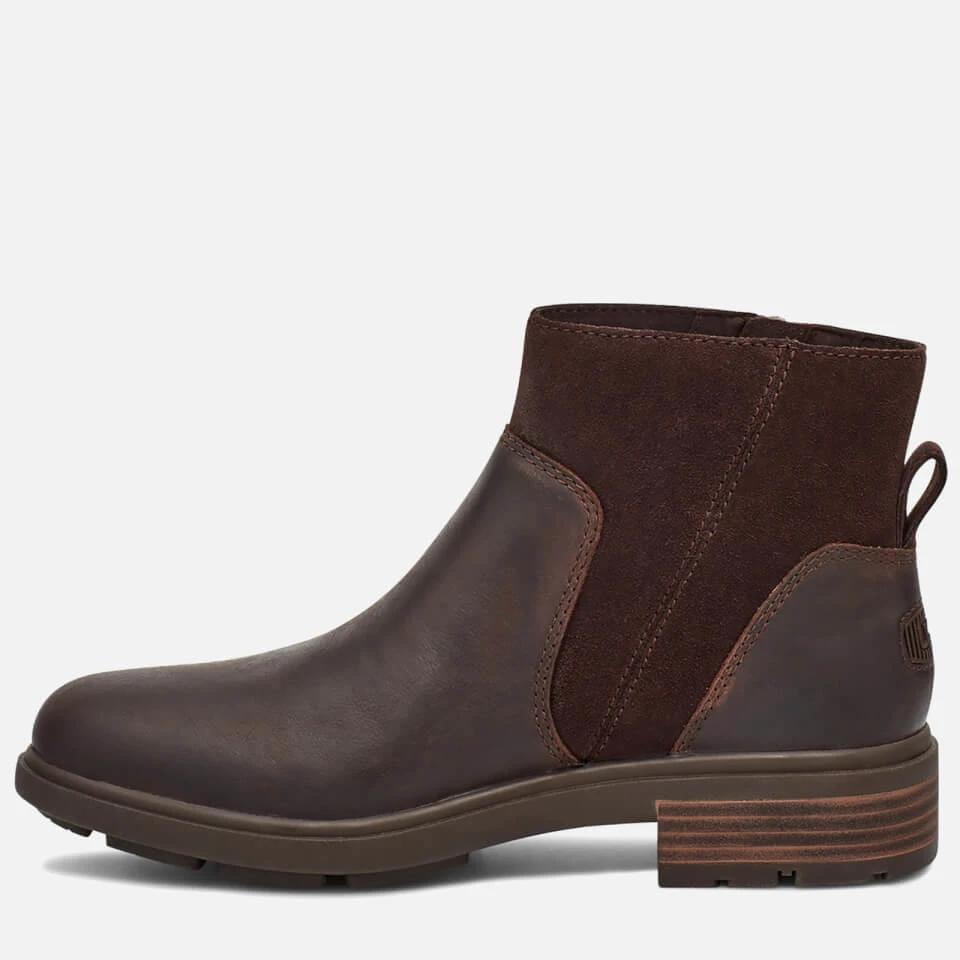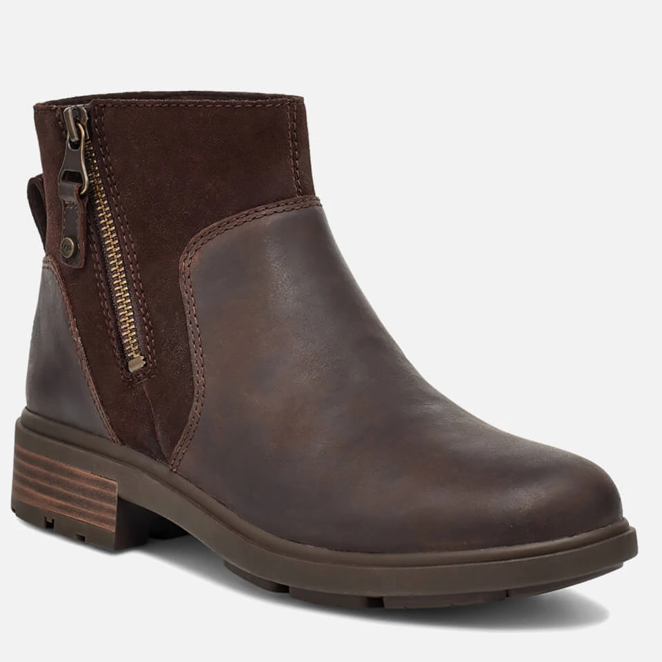 UGG’s Harrison ankle boots were crafted with all-weather comfort in mind. Made from waterproof leather and suede, the seam-sealed uppers are lined with a cushioned insole and secured with a side zip for an easy on-off fit. The moulded outsole is made from sturdy rubber and lifted by a stacked heel.