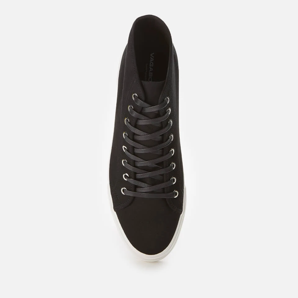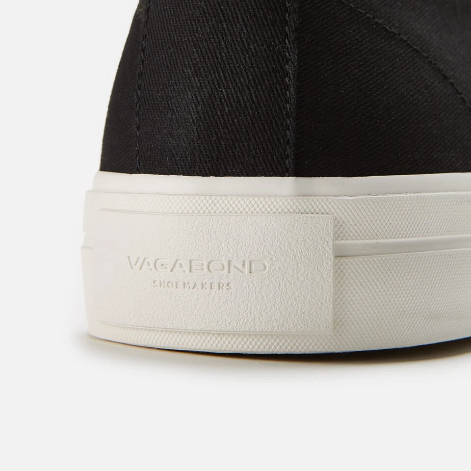 A timeless addition to your footwear rotation, Vagabond’s Teddie high-top trainers have black organic cotton canvas uppers. The minimal silhouette has a classic round toe and sit on chunky white rubber soles. Silver-tone metal eyelets and wax cotton laces for a premium finish.