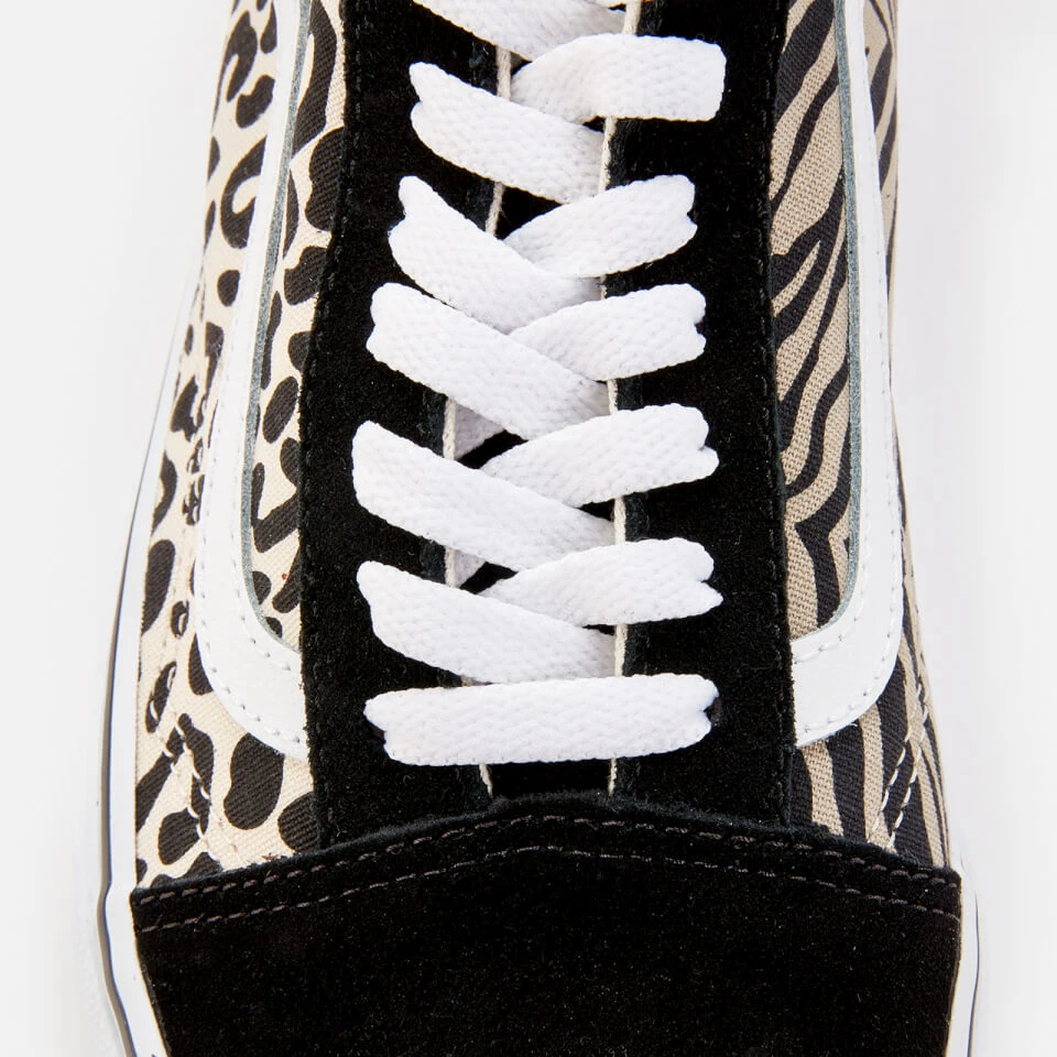 Vans’ Safari Old Skool trainers riff off the label’s 1977 style. Reimagined in animal printed canvas and smooth suede, they have the classic skate-inspired touches of reinforced toe caps and a comfortably cushioned heel collar. They’re set on a waffled outsole and decked with leather jazz stripes down either side.