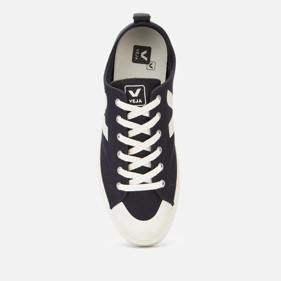 Brazilian-made ‘Nova’ trainers with Veja’s iconic ‘V’ detail in silkscreened print at sides. Designed in and lined with organic cotton canvas, the low-top sneakers feature rubber toe caps, eight-eye lacing system and soles made of natural rubber from the Amazonian forest. Serrated treads offer great grip.