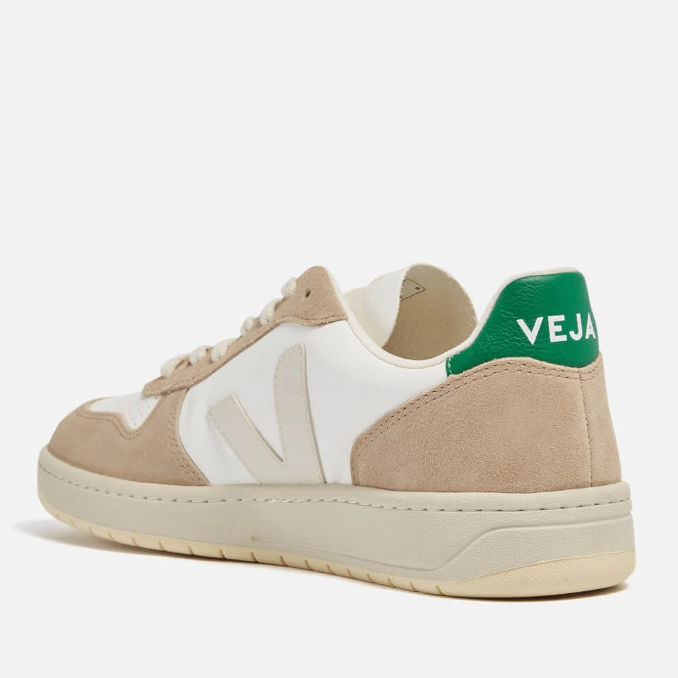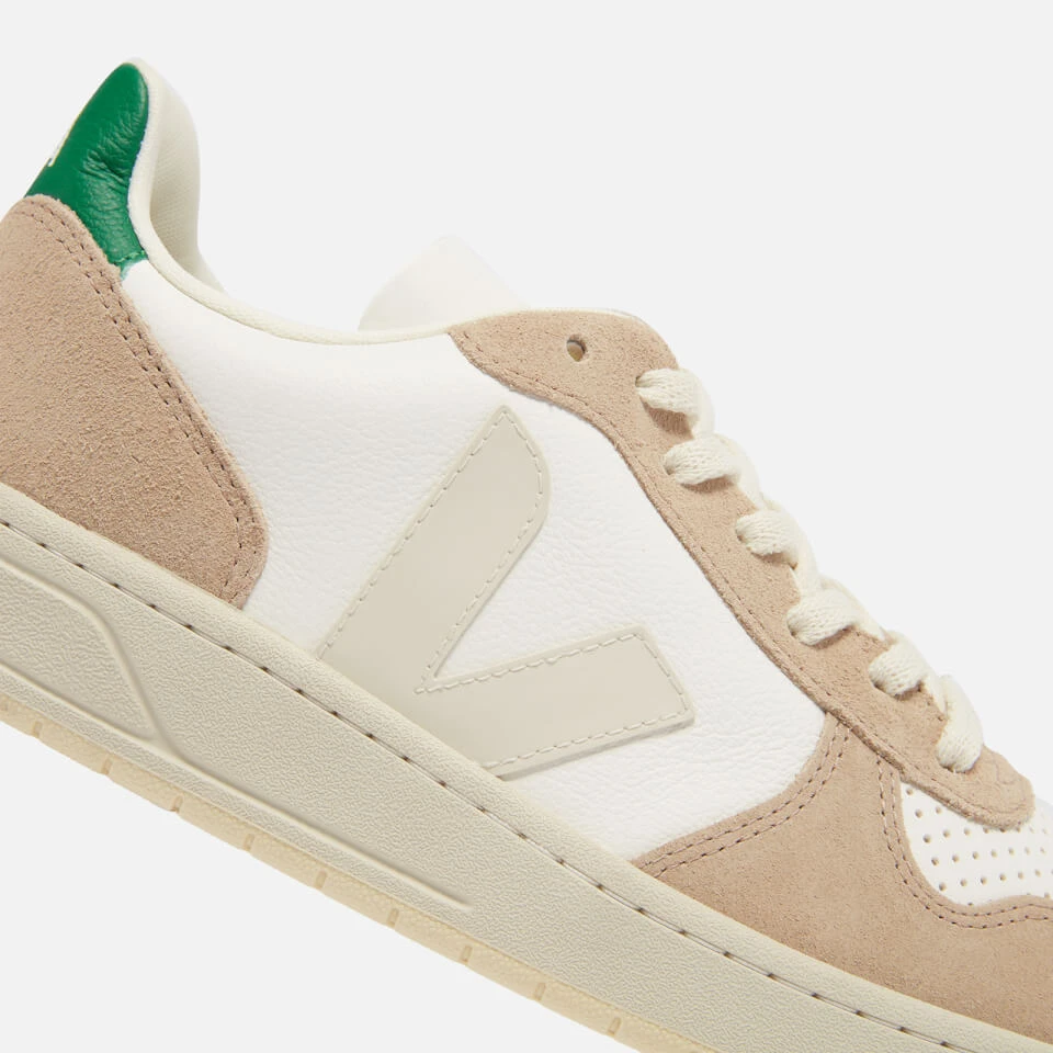 Veja’s V-10 trainers are made from responsibly sourced leather in a retro basketball-style silhouette. They’re panelled from suede and have supportive soles are moulded from wild Amazonian rubber. Where yours with rolled cuffs to showcase the V logos.