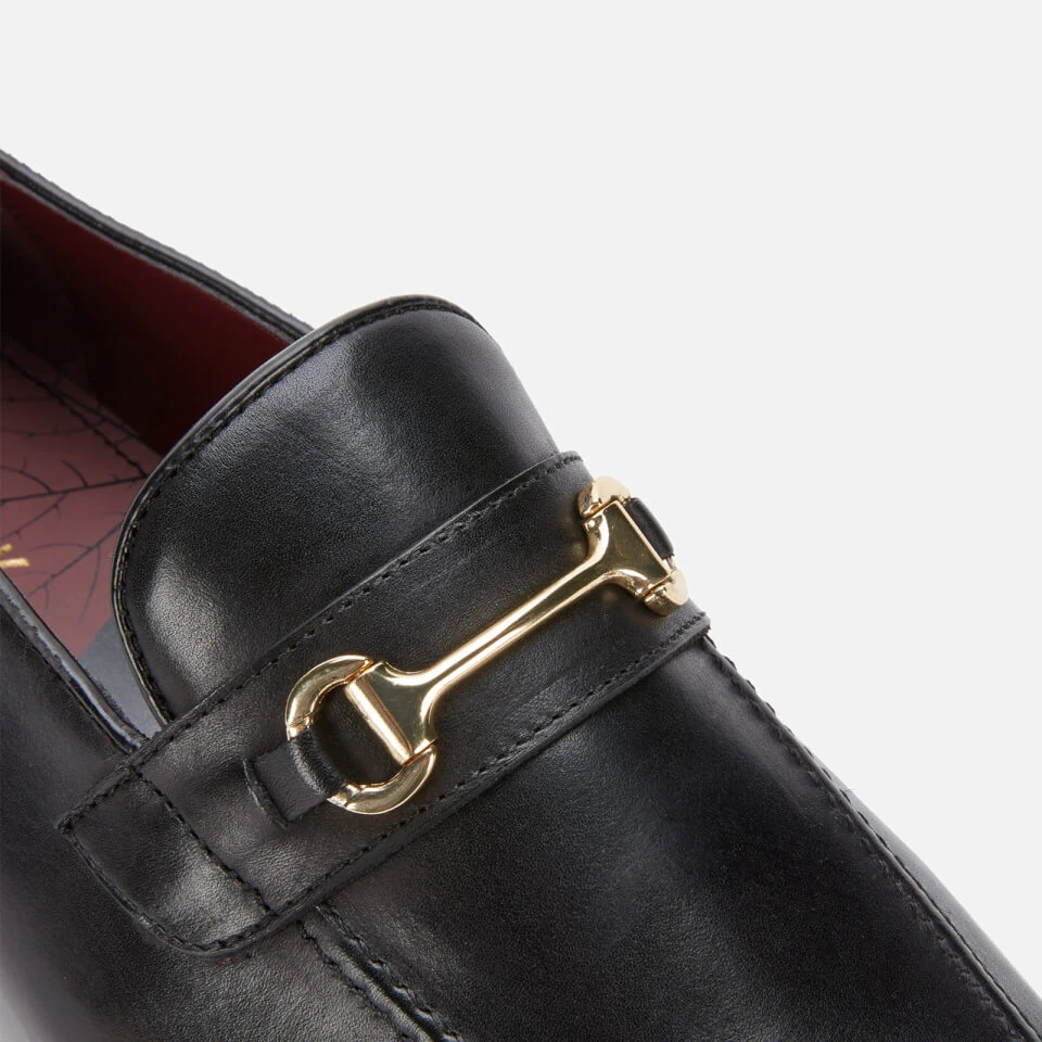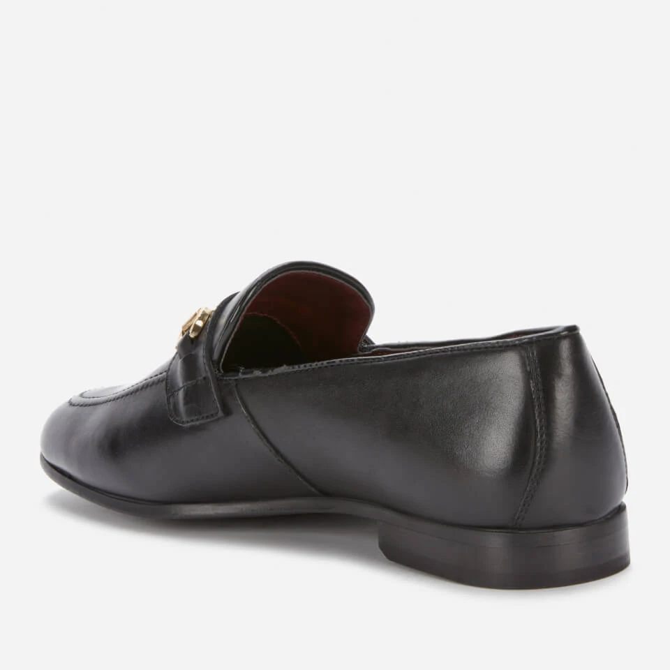 A versatile formal choice that can be worn in the office or on nights out, the Walk London Terry loafers are made from smooth black leather and detailed with a gold-tone snaffle bit across the vamp for a classic look. The slip-on style has an apron toe and a tonal handmade sole with a small, stacked heel. A suede-effect heel counter on the inside provides comfort and a leaf print sockliner with gold foil branding adds the finishing touch.