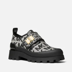 Coach Women’s Hanna Jacquard Gold-Tone Chain Leather Loafers